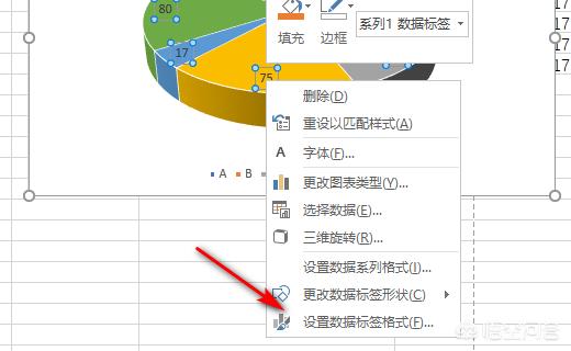 3、选中饼状图中的数据后,点击鼠标右键,然后选择设置数据标签格式(数据系列格式)。