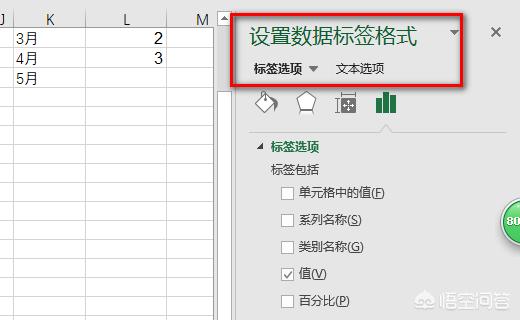 4、点击设置数据标签格式后,在Excel表格右侧就会出现设置数据的选项了。https://iknow-pic.cdn.bcebos.com/80cb39dbb6fd5266c6a2be22a418972bd407367e