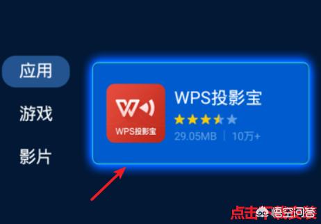 3、在搜索结果页面中,选择”WPS投影宝“(这是WPS在电视上的专用版本),点击开始下载安装。