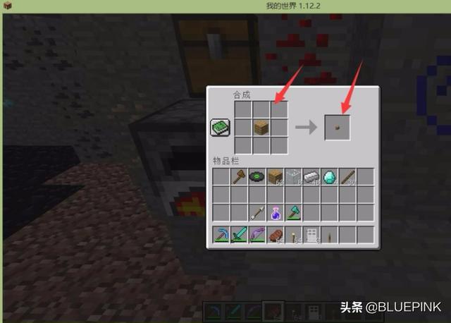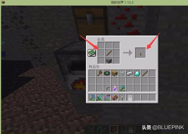 第三步,铁门合成之后,我们还需要制作开门的工具,铁门不像木门可以直接开关;需要制作一个按钮,或者拉杆;一个木板可以合成一个按钮;一根木棍和一个圆石合成一个拉杆。