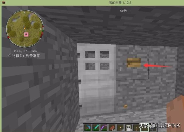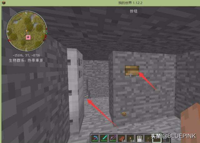 第五步,将按钮放置在铁门的相邻一格中,注意铁门和按钮不能隔开,然后右键点击一下按钮就可以开启铁门了。