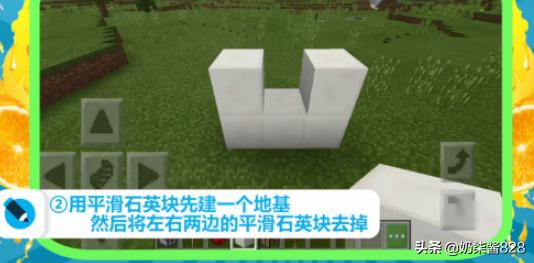 2、用平滑石英块先建一个地基,将左右两边平滑石英块去掉。