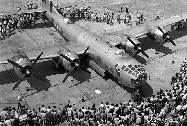 太平洋战争爆发之后,美军加快了研制之中B-29远程轰炸机的列装速度:1942年3月,在原型机还没有试飞的情况下,数月前在珍珠港被日军吊打的美军,就直接下了上千架的订单。结果,1942年9月B-29轰炸机首飞成功两年之后,作战半径高达2800多公里的该型战机,就已成为美军在亚洲战场的主力轰炸机:1944年10月28日首次投入塞班岛作战,之后不仅承担了横扫太平洋并轰炸东京的任务,而且还向广岛和长崎投掷了人类历史上的前两颗原子弹,从而获得了一个“超级空中堡垒”的称号。