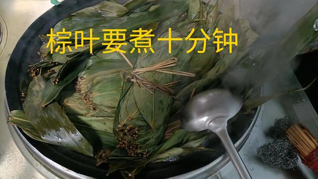 2丶棕叶,要洗干净,凉水泡开后,煮十分钟,使棕叶变软,变有韧性,包时不容易裂开。