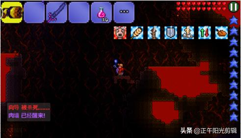 5.肉山可以在地狱中,使用向导巫毒娃娃道具进行召唤,与肉山对抗前,最好提前铺设一个空中平整的道路,方便边退后边输出,击败肉山进入到后期世界。
