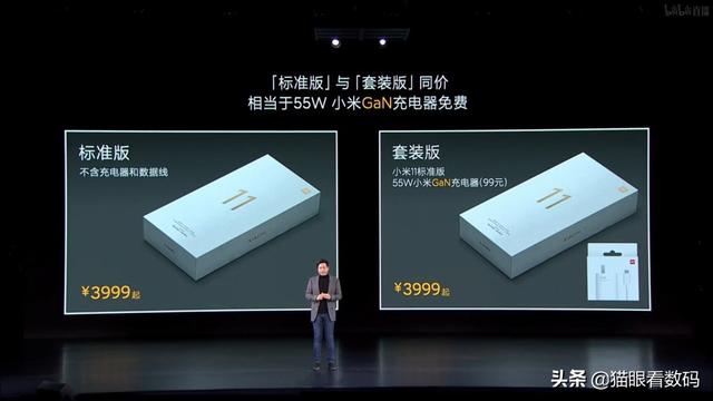 再加上小米11跟随苹果取消了随机附送的充电器,也是价格能够维持在3999元的原因之一。当然雷军为了避免被米粉喷,特意推出了两个版本,一个附送55W的氮化镓充电器,一个就是裸机,二者的价格一样。虽然绝大部分用户会选择带充电器的套装版,但是在套装版无货的情况下,很多用户还是购买了非套装版本,这样一来还可以节省一部分成本的。