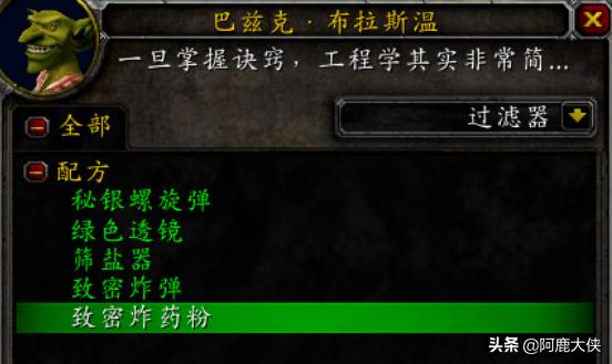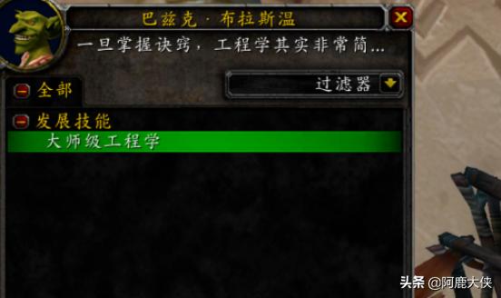 3、【学习大师级工程学】向"巴兹克·布拉斯温"学习大师级工程学,并学习相关工程配方,手续费5金。