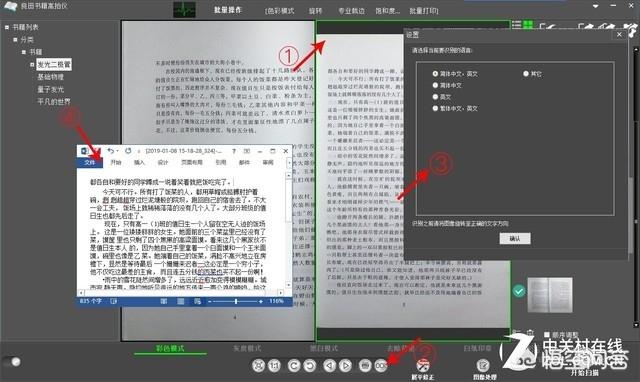 良田书籍高拍仪可以将扫描的内容直接输出Word格式,并且支持修改,这一操作极大方便了日常的扫描工作。其操作过程也是非常的简单,首先我们选择要识别的图片,然后点击“OCR”按钮,然后选择输出的语言,最后图片中的文字就会以Word文档的形式呈现在大家的眼前了。