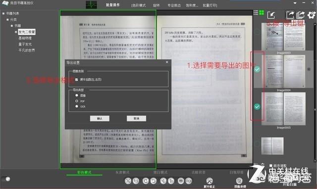 良田BS2000P书籍高拍仪还支持批量导出操作,只需选择好需要导出的图片,然后设置好导出图片的格式,最后轻按“导出”按钮即可导出到电脑、U盘中,操作非常简便。