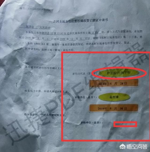 这是我亲身经历的,因为我本人就是本自然村的发包方的特定代表人,并非虚构情节。在我们这里,土地确权表格上除了户主签字按手印外,发包方代表人也要同时签字并按手印的。“私凭文书官凭印”,这样做,就是避免日后节外生枝,即使出现土地纠纷,一律以确权表格上的标注、签字和说明为标准。