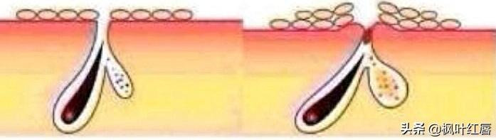 没有卸干净的残留彩妆,和这些皮脂腺分泌的皮脂,粘合在一起,生成栓塞物,堵塞毛孔。