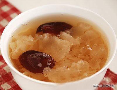 制作:将银耳、红枣洗净,在锅内用文火煨炖到熟烂。吃时加入白糖即可。每日早、晚各一次,连服一周。
