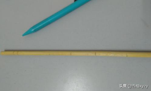 2、先用铅笔在一支筷子上划上头、脖子、躯干、胳膊、腿的比例。头因为要宽,所以要两个头的长度。