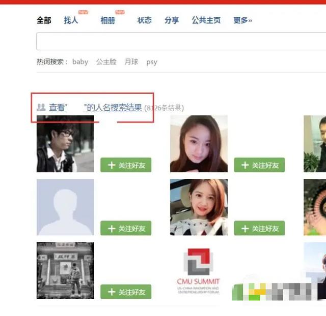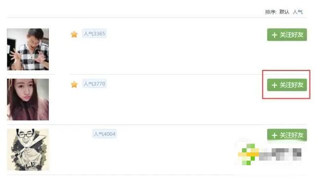 最后,在搜索结果页面中,可以根据网友头像来判断是否自己寻找的人,如果是的话,点击“关注好友”按钮即可进入对方主页面查看相关资料。
