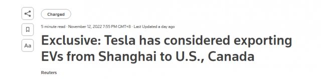 特斯拉据传考虑从上海出口至北美