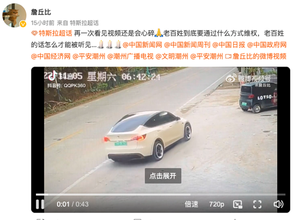 由于发酵的越来越深,当事人儿子詹先生在个人微博上最新发声称,“全程无刹车动作”的说法,“既然会去闪躲,为什么不会踩刹车?正常的驾驶员,你会懂得去躲避,不懂得踩刹车,这是死都说不过去的东西。”