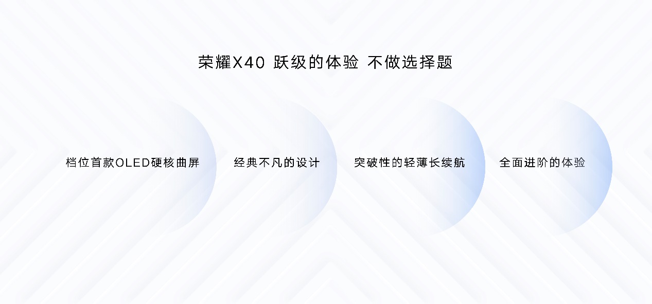 从旗舰级荣耀MagicBook V 14 笔记本 2022,到全新跃级标杆荣耀X40手机,再到全新荣耀MagicBook X系列笔记本等产品,荣耀始终以用户为核心,将高品质贯穿其中,不断为用户提供新价值。画出微笑曲线领先市场不是终点而是开始,未来荣耀将以严苛品质作筏,以创新技术为桨,以跃级体验为帆,致力为用户带来更加极致的体验。荣耀坚信,所有荣耀皆始于微光,而点点微光也终将汇聚成这个时代的荣耀。