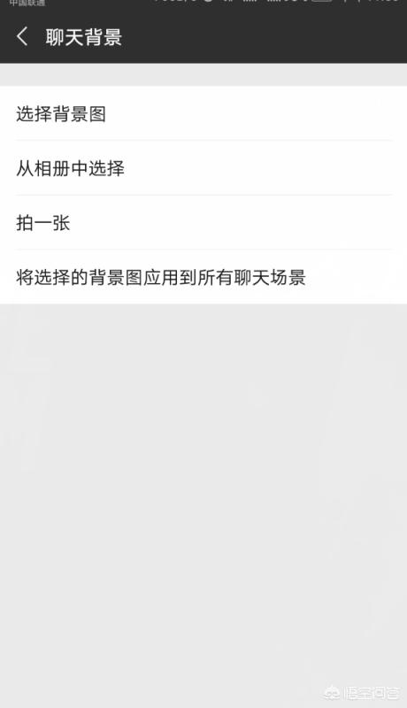 四、在【聊天背景】界面,如果你想选择系统的背景图,则选择【选择背景图】;如果想选择自己相册中的图片作为背景图,则选择【从相册中选择】;如果你想选择现拍一张照片作为背景图,则点击【拍一张】。