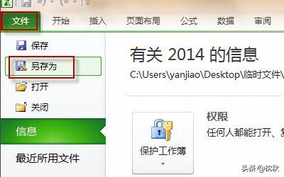 1打开要设置密码的excel电子文件,在文件菜单占点击另存为。