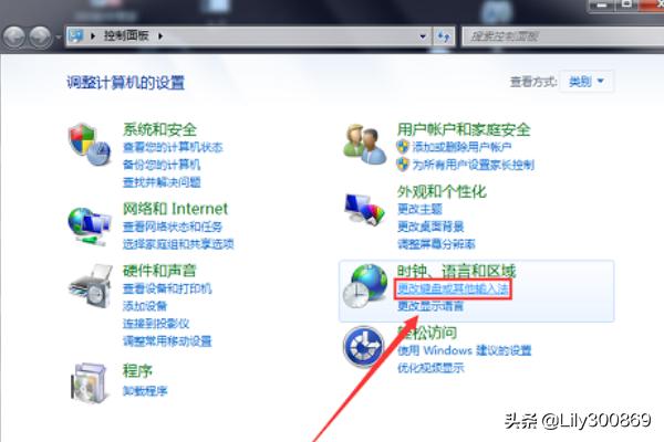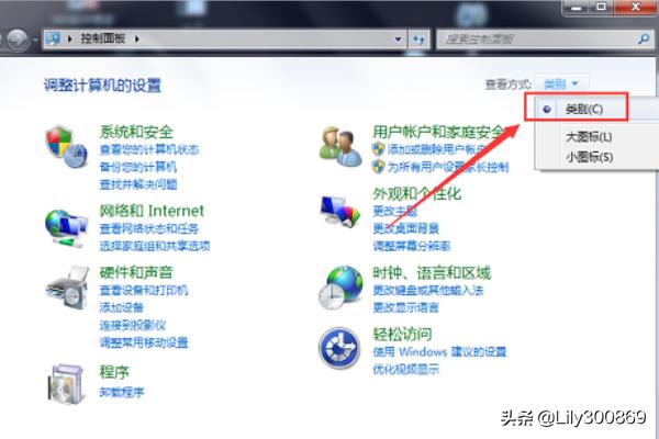 2、进入“控制面板”的页面后,最好将查看方式选为“类别”,便于查看,如下图所示。