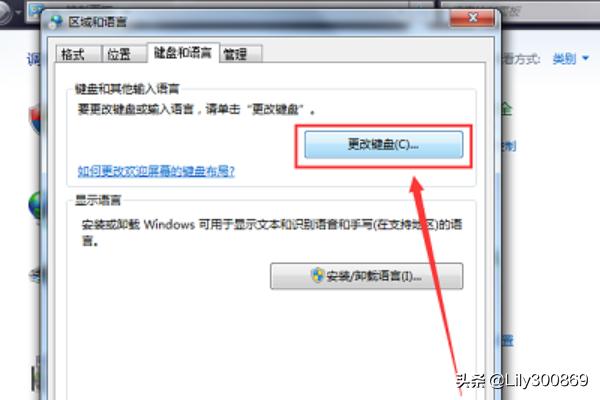 4、现在弹出了“区域和语言”的窗口,点击“更改键盘”选项进入。