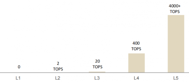 不同自动驾驶等级对于算力需求(来源:Wind)