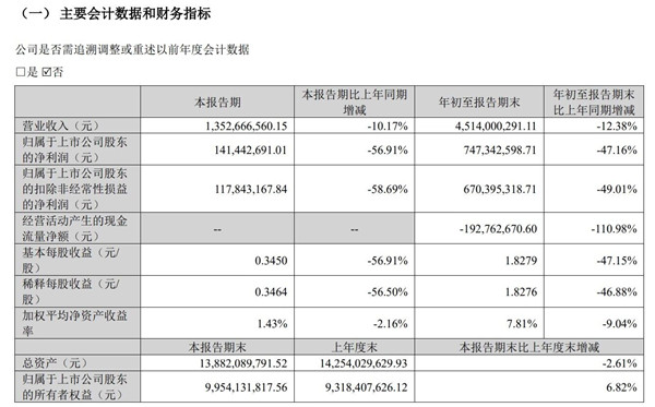 今年前三季度,华大基因营收45。14亿元,同比下降12。38%;归属于上市公司股东的净利润为7。47亿元,同比下降47。16%;扣除非经常性收益后的净利润为6。7亿元,同比下降49。01%。