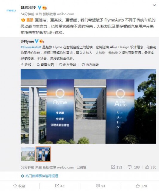魅族将推出车机系统FlymeAuto进军智能车舱