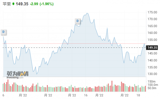 苹果股价自10月13日触及15周低点以来,一直呈反弹趋势,截至周三收盘,报每股149。35美元。
