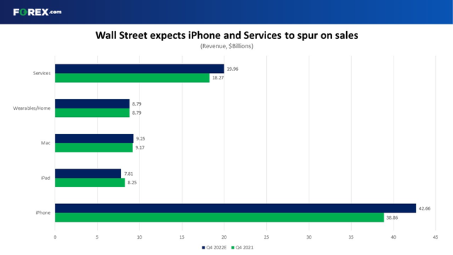 在该财季中,苹果最备受瞩目的事件是iPhone14及其Pro机型的推出。苹果于9月发布了4款新机型,且新款机型的推出比往年提前了一周左右,这可能提振这个季度的销售额。