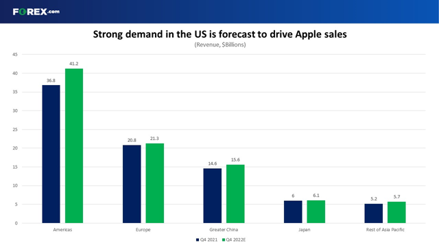 在全球市场中,华尔街一致认为美国市场需求最为强劲,将对苹果的季度销量增长贡献最大,其次是中国市场。不过中国市场的销售额增长较往年疲软,低于市场预期。