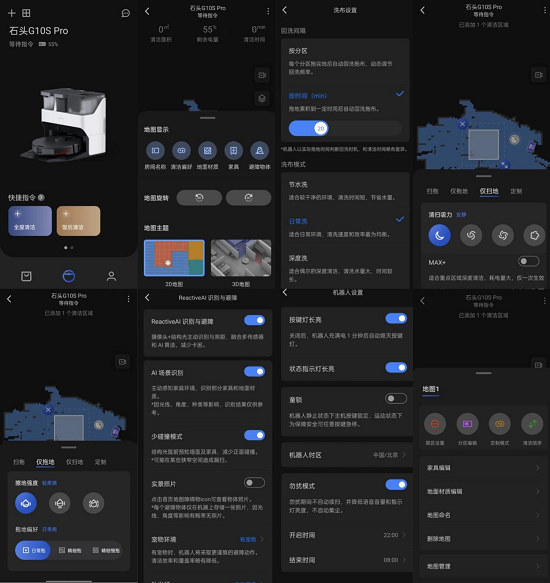 在实测过程中,只要打开石头app的首页,通过网络识别连接之后,你就可以通过app完全控制它。为了让消费者使用起来更方便,石头自清洁扫拖机器人G10S Pro的智能托管功能上线。在测试的过程中,将清扫模式进行自定义,它就保存为固定的工作流,再次使用的时候,可以直接从app首页启动执行这个流程或定时执行。