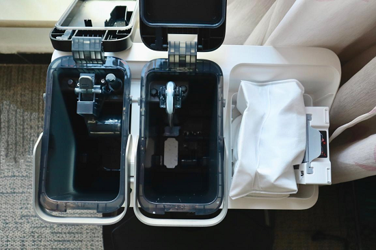 石头自清洁扫拖机器人G10S Pro的自动集尘功能十分强悍。当扫地机器人结束工作回到基站回充时,装载垃圾的集尘盒中的垃圾,直接会在27000Pa 超强吸力下,快速清空尘盒吸入密封进尘袋中。而且一次性密封尘袋抽取简单,容量大,据说可容纳正常使用60天的垃圾灰尘。