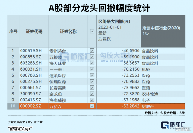 比如,茅系最正宗的贵州茅台最大回撤高达47%,五粮液、海天味业、海康威视大跌近60%,而三一重工、通策医疗、恒瑞医药、长春高新、金龙鱼回撤超过70%。如此之深的跌幅,在过去只有08、15年这种大股灾的时候才会有的事了。