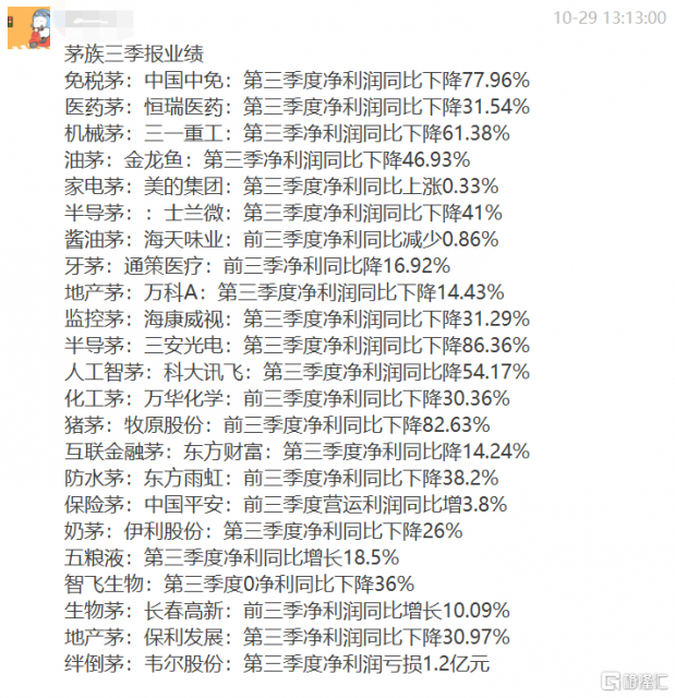 上周末,一张茅族三季度业绩表在各大投资群疯狂转发刷屏。我想,这背后是无数散户内心无奈与煎熬的真实写照。
