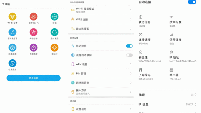 通过扫描机身上的二维码,可下载ZTElinkAPP,在APP中能够更快速便捷地对产品进行设置。如果家中本身就有光纤宽带,可以选择5G与有线网络组成「双网双待」模式,这样便能在有线出现网络波动时,设备能智能切换到5G网络,双向保证自己享受稳定与安全的高质量无线信号。